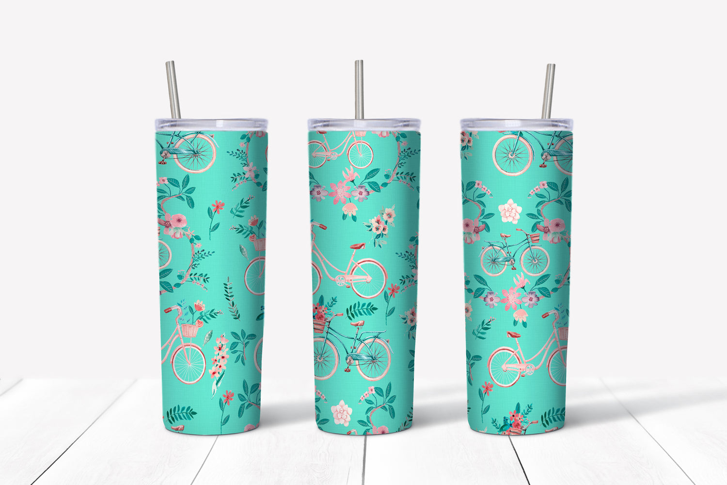 Flowers and bike sublimation tumbler